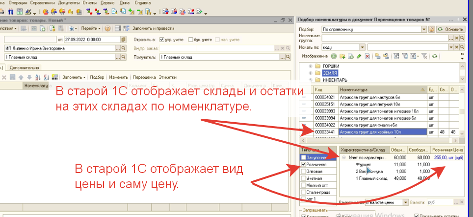 В старой 1с, был подбор товаров, который показывал виды цен и цены по ним, показывал остатки по складам (скриншот прикрепляю).
