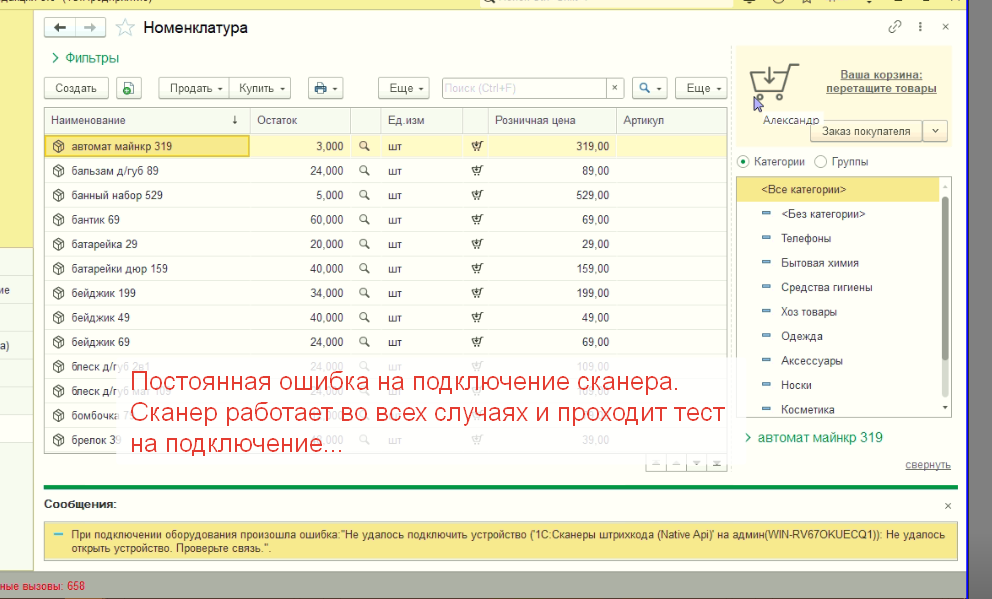 Розница базовая 3.0 - подключить кассу, настроить РМК, ошибка сканера и др. недочеты исправить
