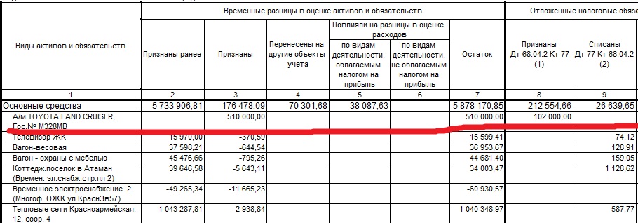 При формировании Справки Расчета Отложенные налоговые активы и обязательства