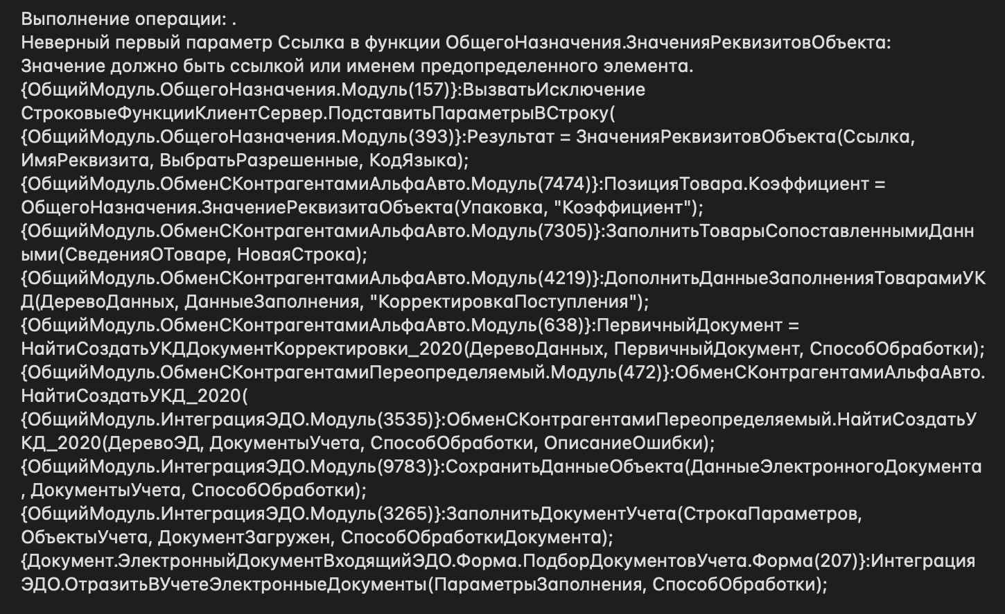 2)Также с этим же контрагентом при создании документов после сопоставления вылетает ошибка и приложение перезагружается(Текст ошибки прикрепил).
