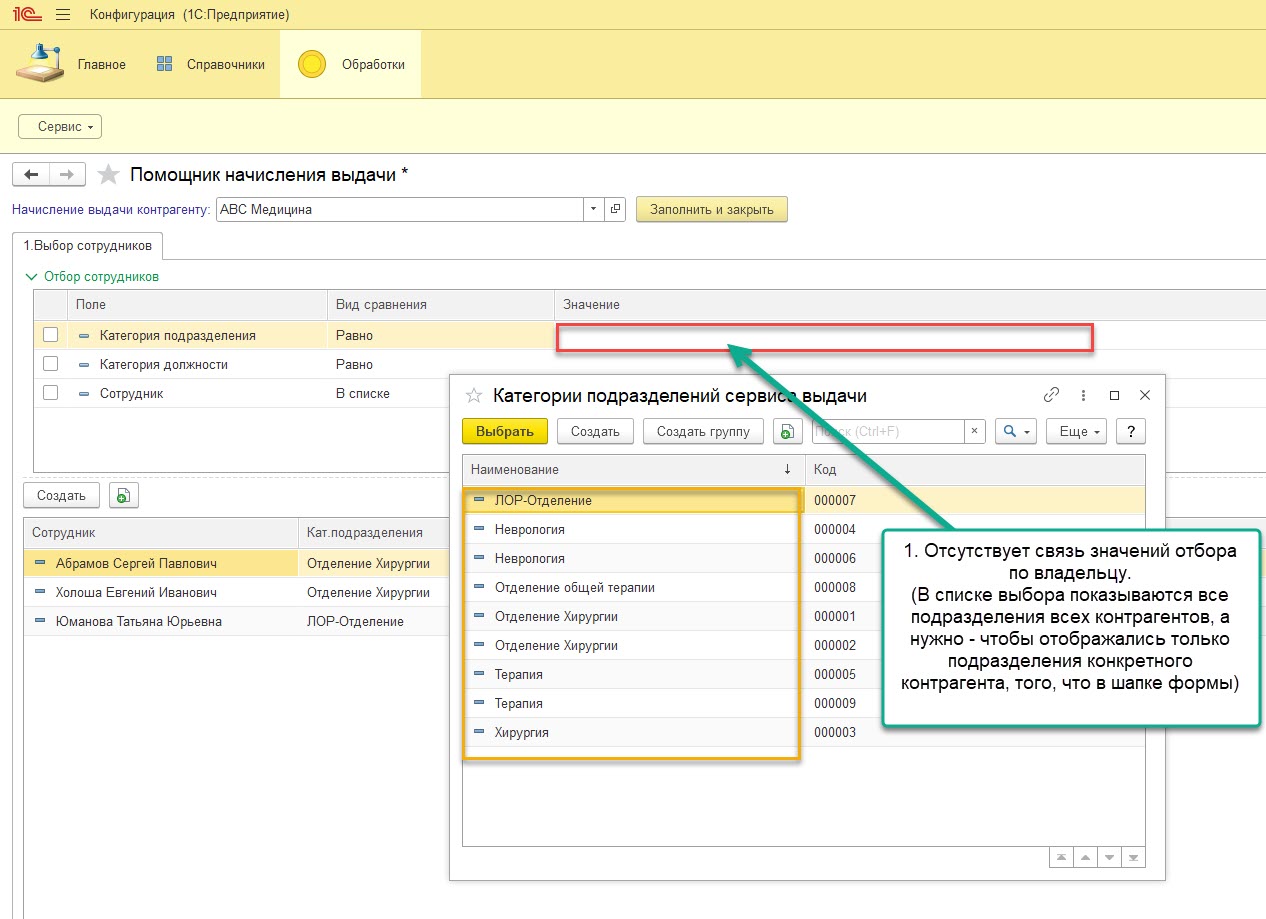1. Значение отбора связаны с реквизитом формы (отбор по владельцу, правильно не работает)