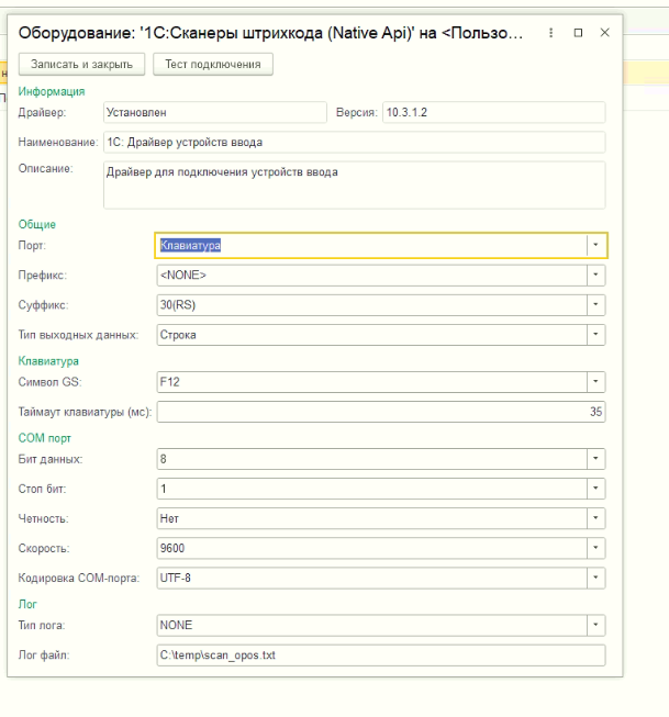 Приветствую! Подключили сканер, но в торговом оборудовании не шарим. Хотиим сканировать маркировки. Вот что выдает отладка. Скриншиты настроек во вложении