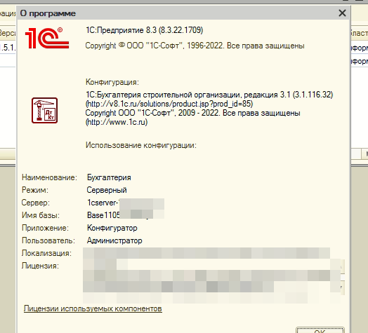 1С:Бухгалтерия строительной организации, редакция 3.1 (3.1.116.32) (типовая) (серверный вариант) - обновить до актуальной.