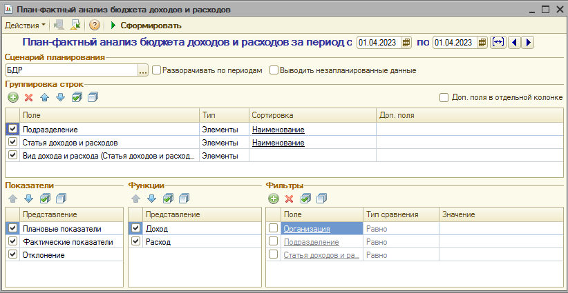 Требуется доработка отчета План-фактный анализ бюджета доходов и расходов. Конфигурация Альфа-Авто 5 (1С 8.3).