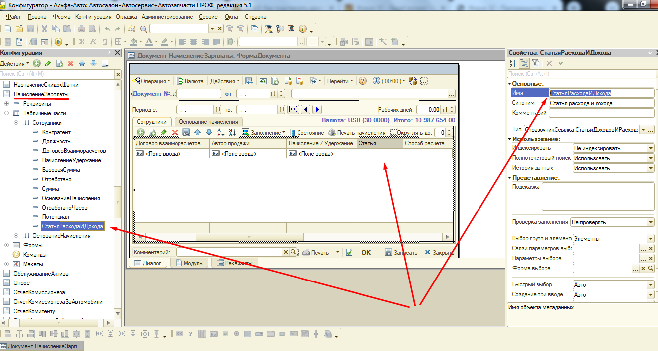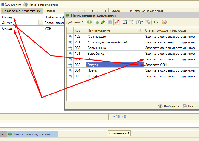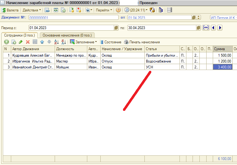 В документе "Начисление заработной платы" добавил поле "Статья", где мы сами добавляем каждому сотруднику статью дохода/расхода.