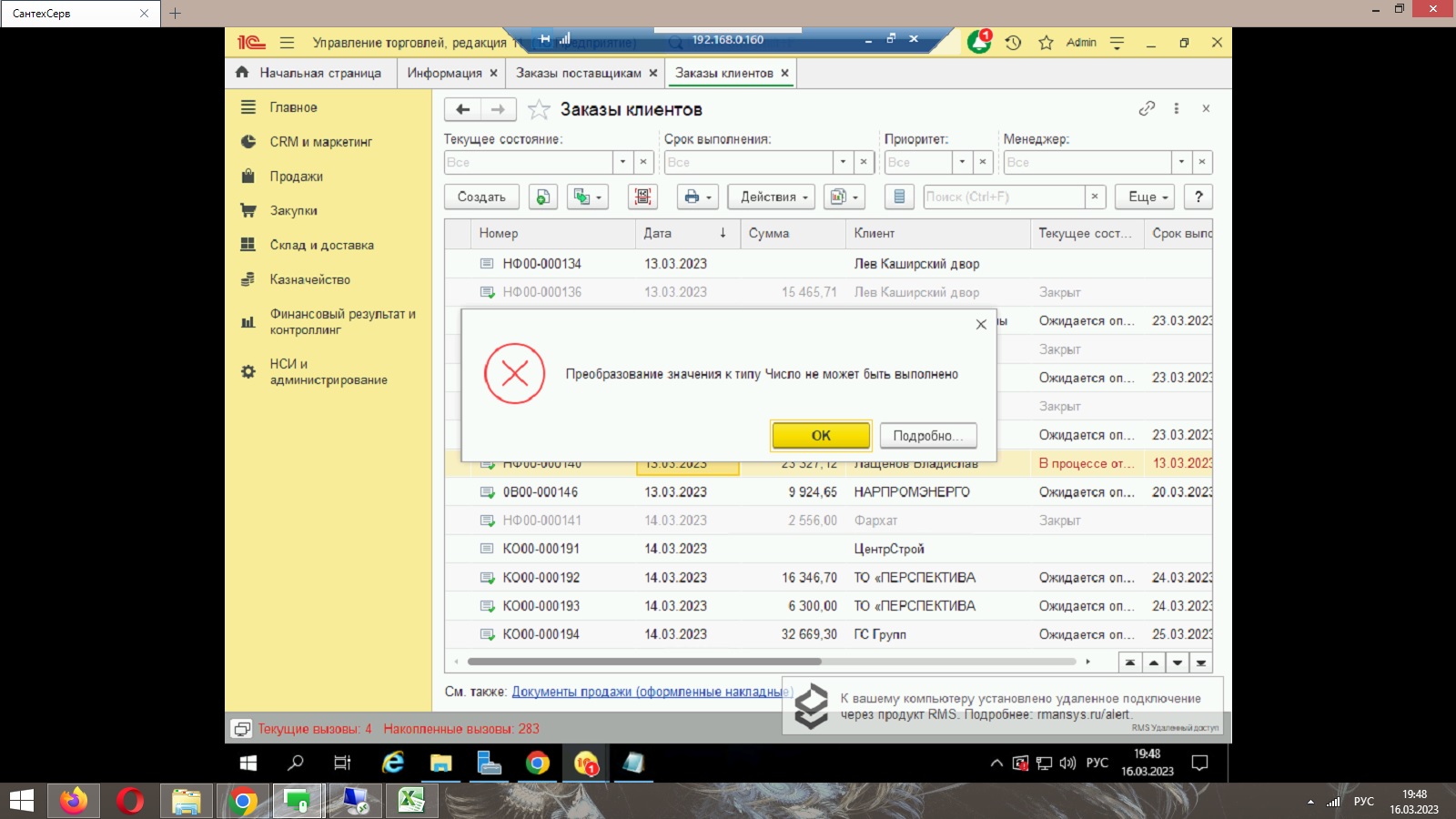 При создании реализации товаров на основании заказа клиентов выдает ошибку, не во всех документах. Так же в целом нужна консультация по программе.
