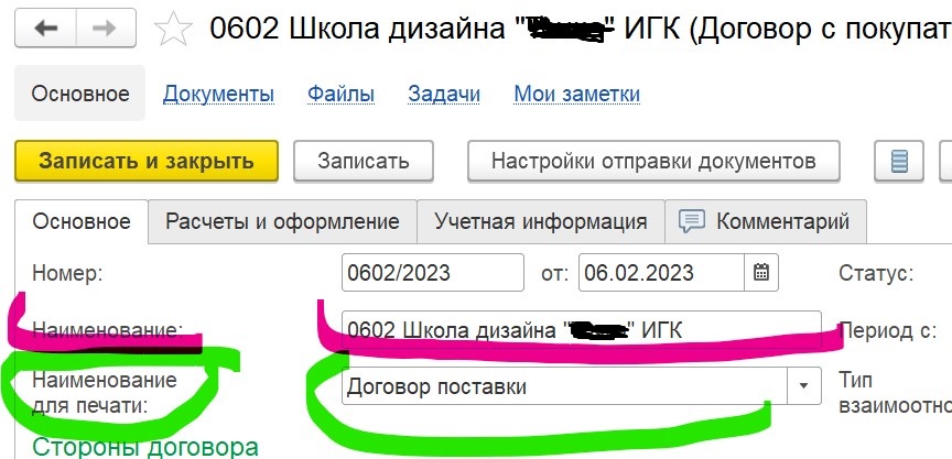Необходимо, внести изменения: при выгрузке УПД в поле Основание передачи - встаёт не верное наименование договора. Вместо данных из Наименования для печати, встают данные из Наименования.