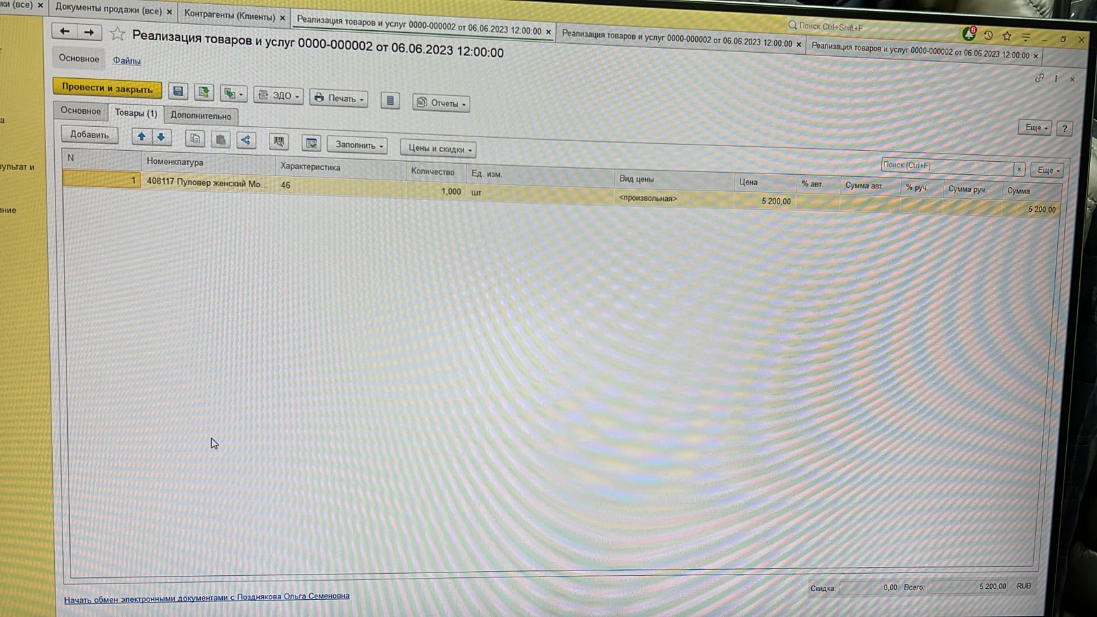 Артикул, Наименование, Цвет, Размер, Количество, Цена, Сумма.