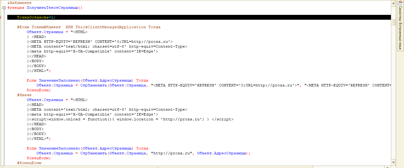 Поправить в обработке функцию перехода на сайт в html документе (платформа 8.3.22.1709)