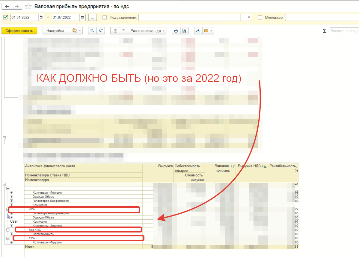 УТ 11.5 - после обновления не показывает разделение по НДС в отчете