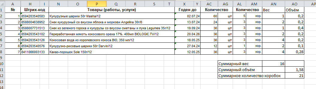 11. Суммарное количество коробок