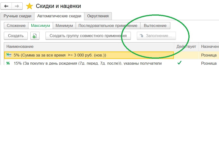 Подключена внешняя обработка заполнения табличных частей. Добавлено размещение"Виды автоматических скидок". кнопка на форме появляется, но неактивна(серая). Разобраться, почему недоступна кнопка "Заполнить" в форме справочника автоматических скидок.Исправить ситуацию