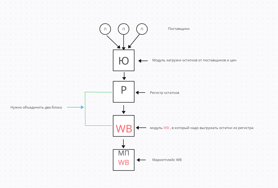 Нужно соединить блок регистра остатков с модулем WB