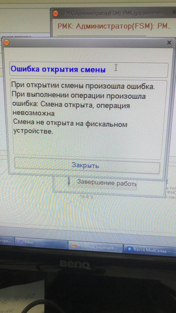 Ошибка на рабочем месте кассира При открытии смены произошла ошибка. При выполнении операции...