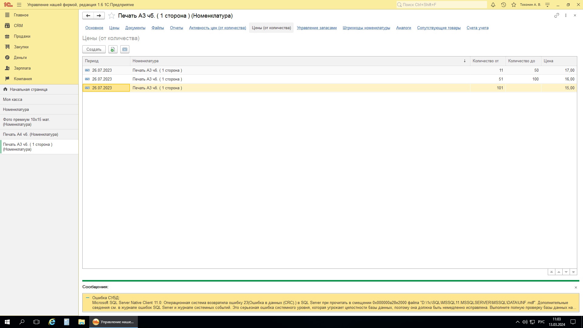 Добрый день. Время от времени вылазит ошибка во время работы в 1 с. Ошибку прикрепил в картинках. Кроме того, сегодня не случилось автоматического записи бекапа базы ночью.
