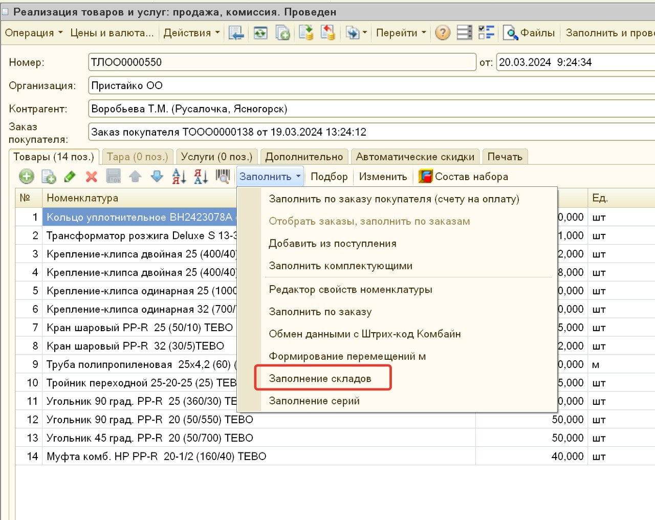 Сейчас в реализациях товара есть обработка, которая заполняет склады если товар есть на складах. Обработка заполняет склады даже если товар уже находится в резерве.