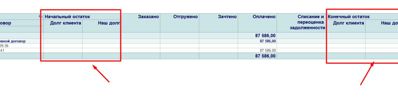 В ВедомостьРасчетовСКлиентамиПоставщиками в erp 2.5 исправить начальные и конечные остатки