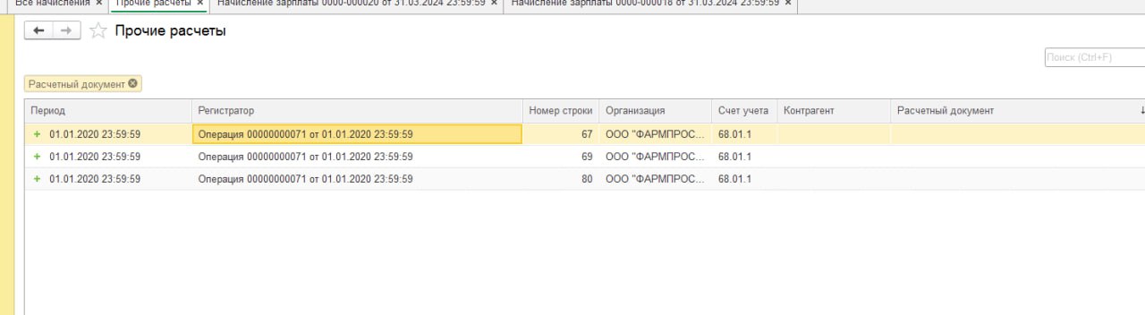 В самом реестре Прочие расчеты есть непонятные дубли операций (см.скриншот).