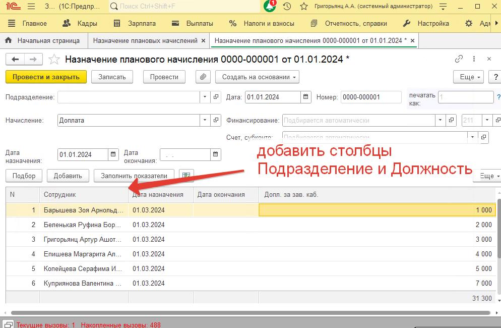 Добавить 2 столбца в документ Назначение плановых начислений в ЗГУ 3.1.28