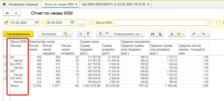 Требуется доработка отчета в УТ11 «отчет по чекам ККМ» вместо кассир вывести «продавец»