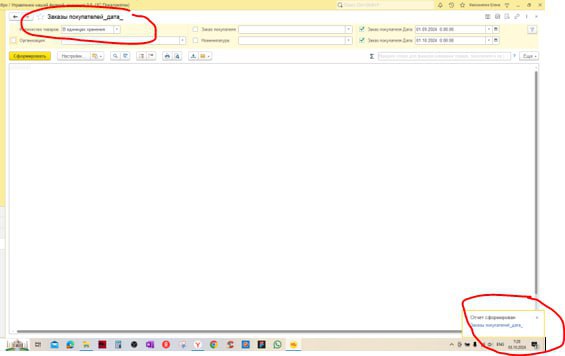 В 1С не формируется отчет по заказам покупателей по датам, уведомление о том, что отчет сформирован есть, а сам отчет не формируется. Именно только у одного пользователя.