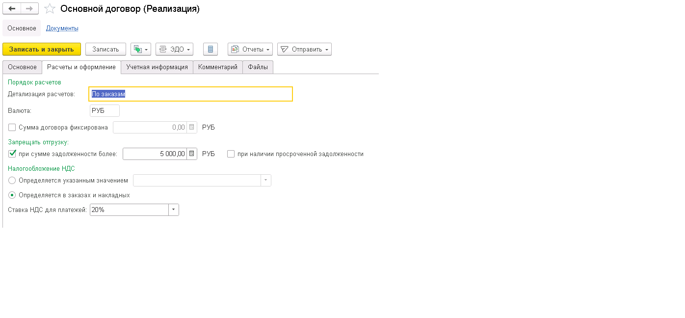 КА: изменить детализацию расчетов в договоре только для контроля задолженности