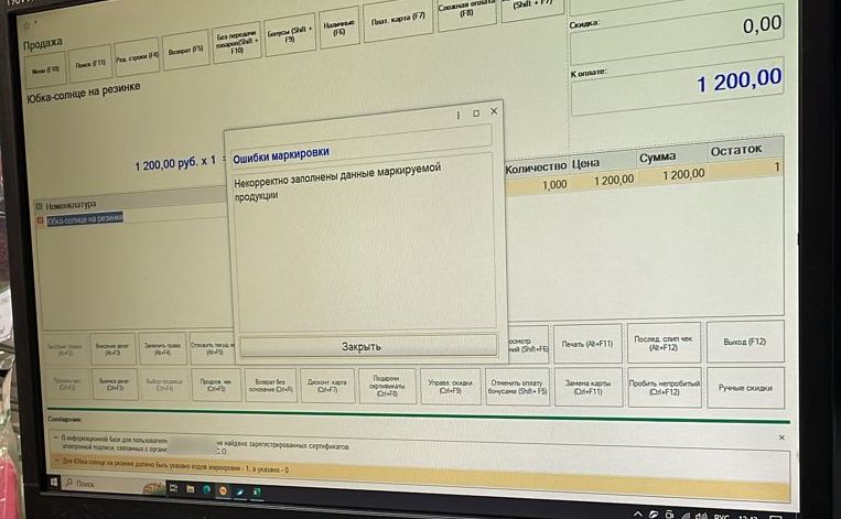Начали считывать коды маркировки для одежды (в 1с добавлена соответствующая группа), почему-то требует сертификат электронной подписи.