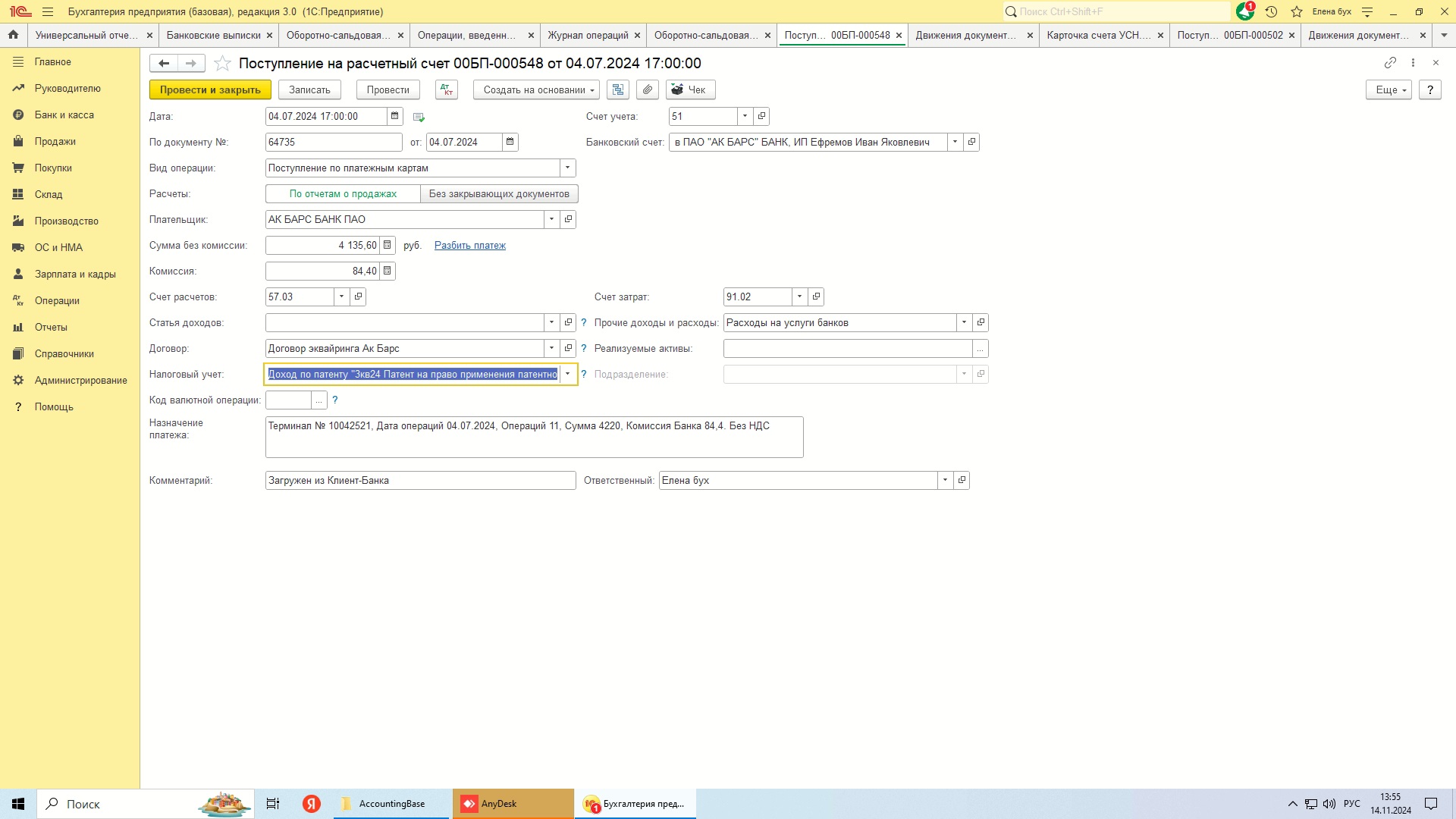 По сберу патент закрывает , то есть садится в расход и значит доход считается по патенту