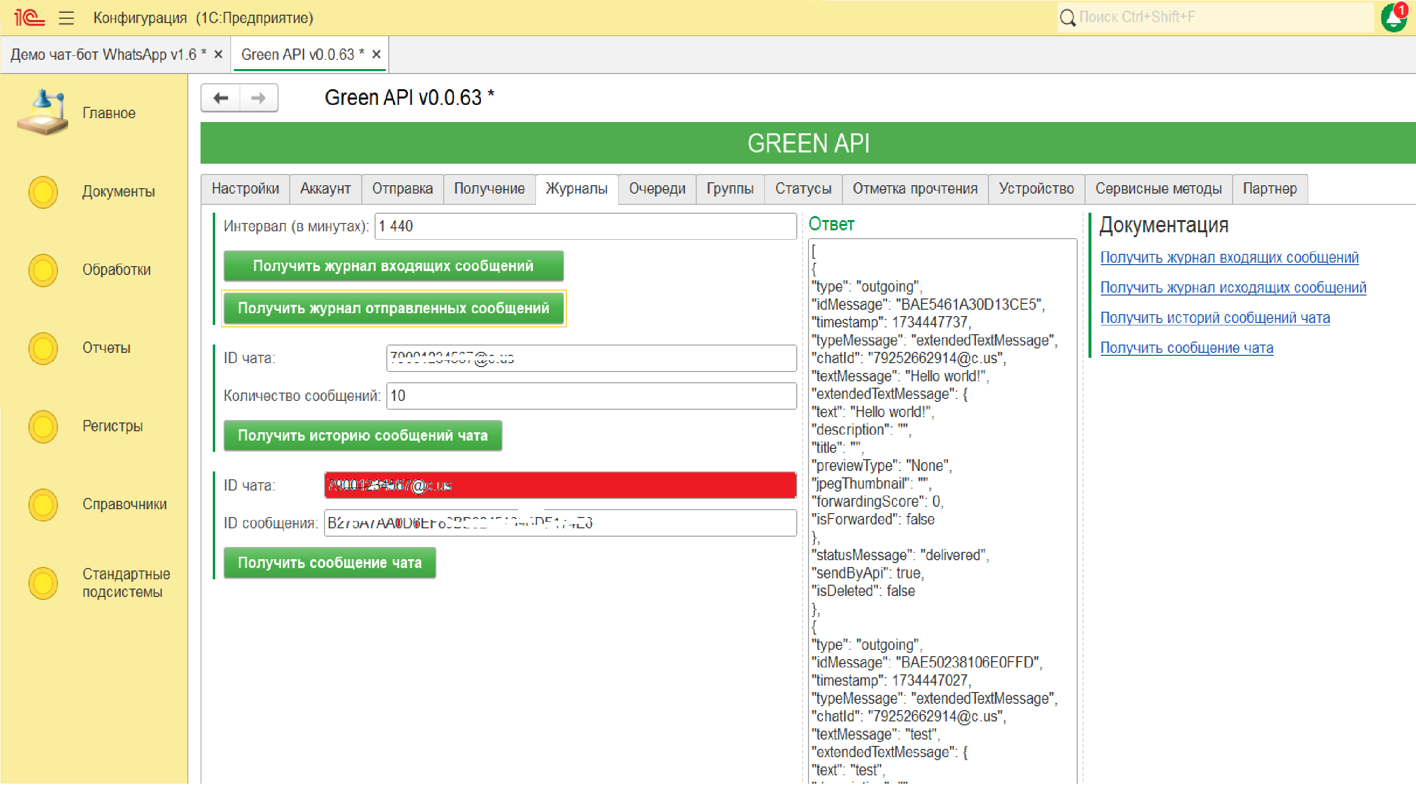 Есть обработка с сайта https://green-api.com/docs/sdk/1c/client/