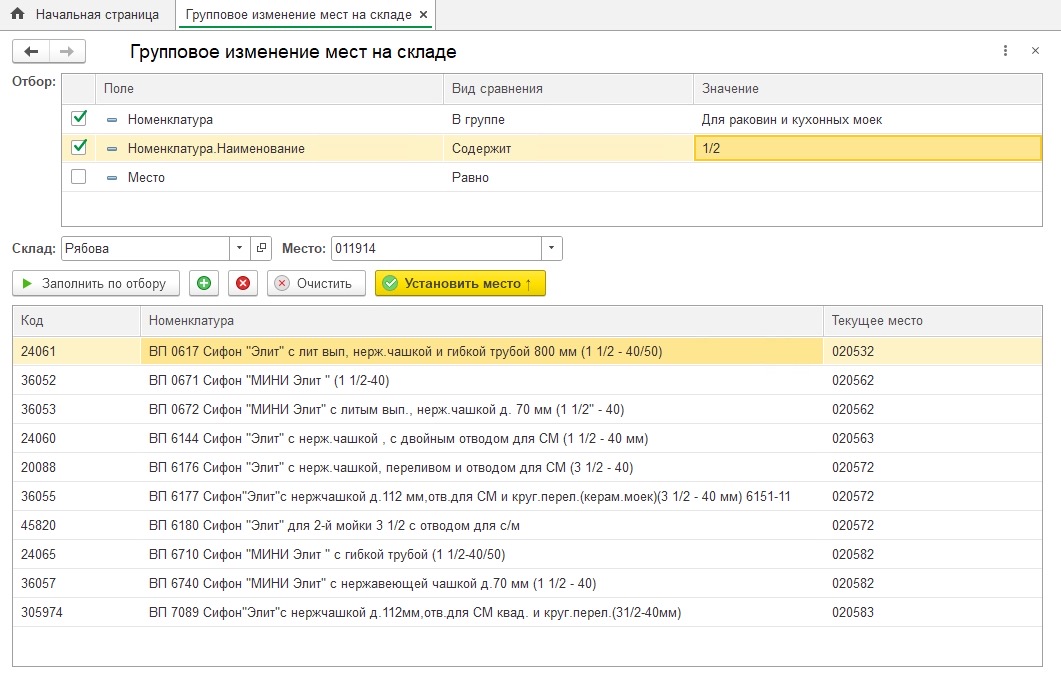 В конфигурации УНФ 3.0 необходимо создать расширение в котором добавить регистр сведений "Места хранения на складе" (измерения: склад, номенклатура; ресурсы: место). И написать обработку для группового изменение мест на складе. При не заполненном месте, у выбранного склада и номенклатуры в списке, места удалить. По возможности предусмотреть защиту "от дурака".