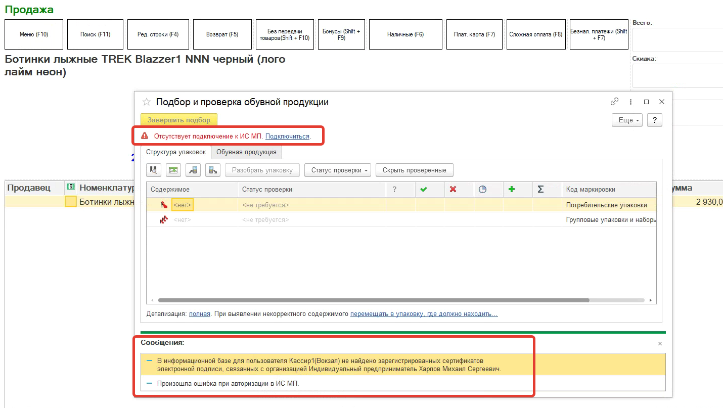 Необходима помощь с устранением ошибки подключения в 1С Рознице 2.3. с честным знаком (ГИС МТ)?