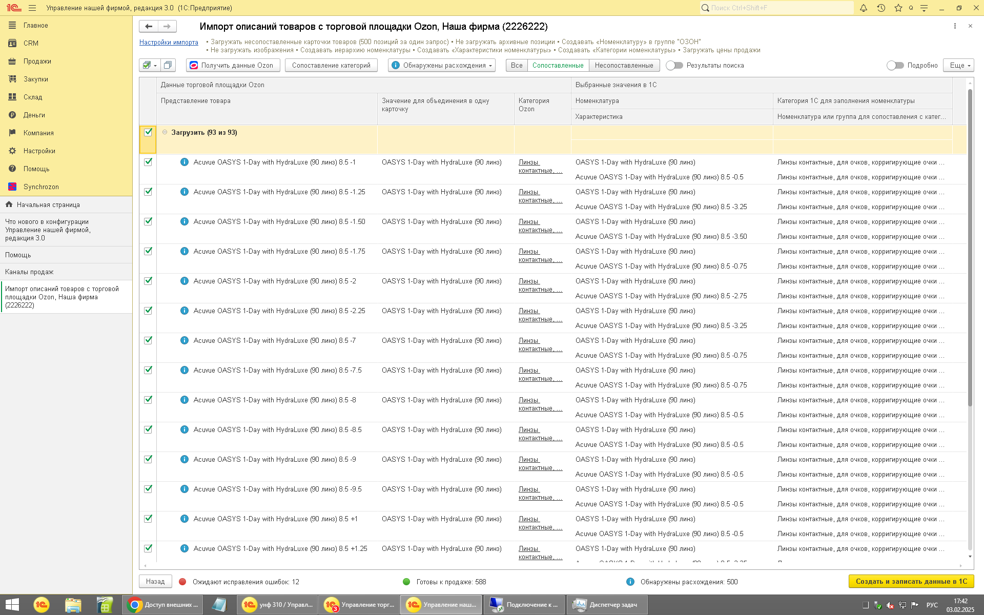 Доработать импорт товаров-характеристик OZON в последней версии УНФ
