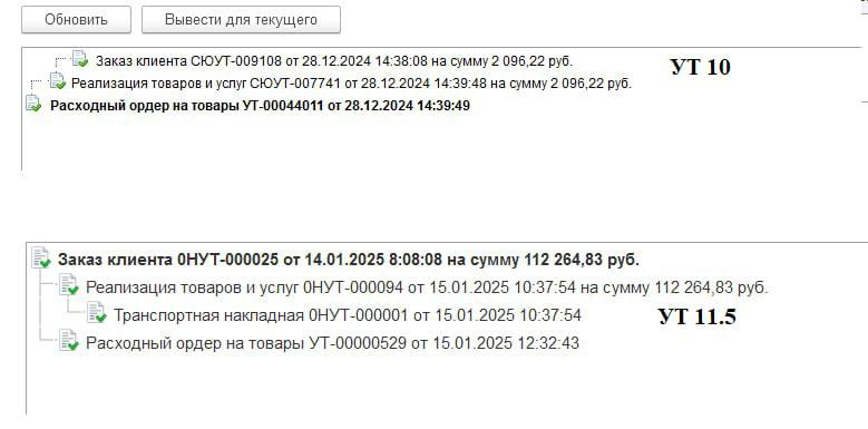 Изменить структуру подчиненности в УТ 11.5, чтобы из расходного ордера была видна реализация, а затем заказ. Как на скриншоте, без внесения изменений в конфигурацию, либо чтобы внесения при обновлении не слетали.