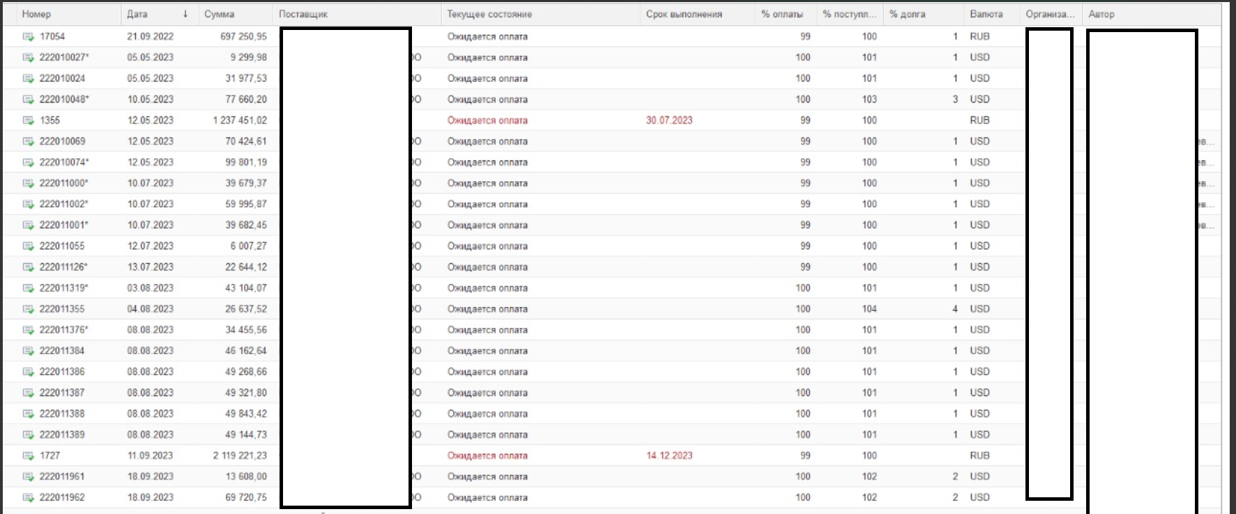 После обновления КА (внедренной) открылись закрытые заказы поставщикам 2022,2023,2024 года.