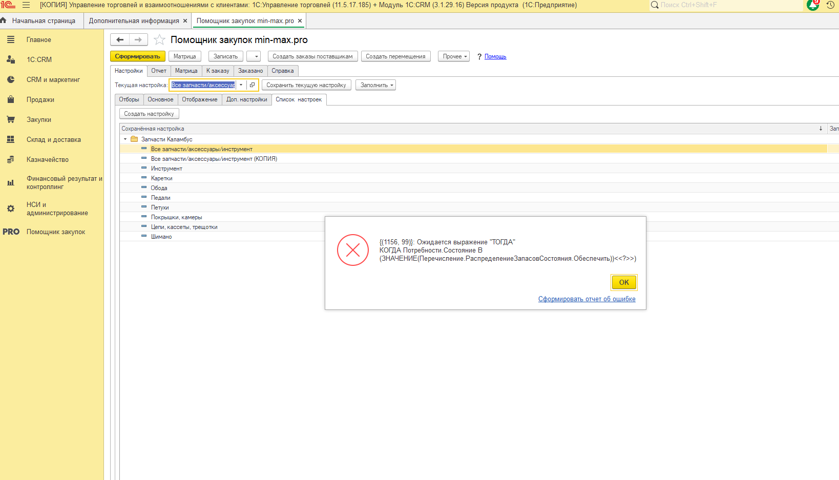 Починить расширение "Помощник закупок" Min-max.pro