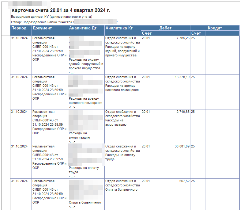 Задача: при закрытии 25 счета исключить "Подразделение Участок X" на 20 счете(проводку Дт20.01"Подразделение Участок X"- Кт25")