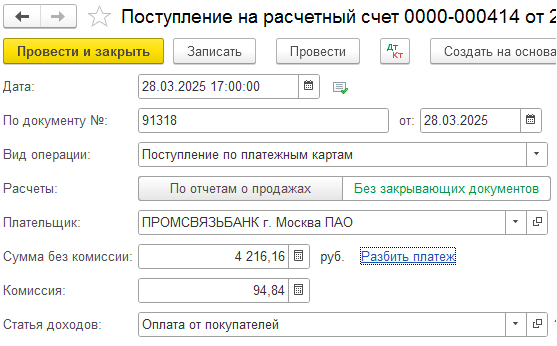 1С БП, Поступление на Р/сч (поступление по картам) не исключает НДС из доходов по КУДиР