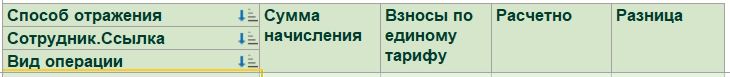 Справа должны быть колонки как на скрине с добавлением колонок Взносы по несчастным случаям (ФСС (несч. сл.)+Расчетно+Разница)