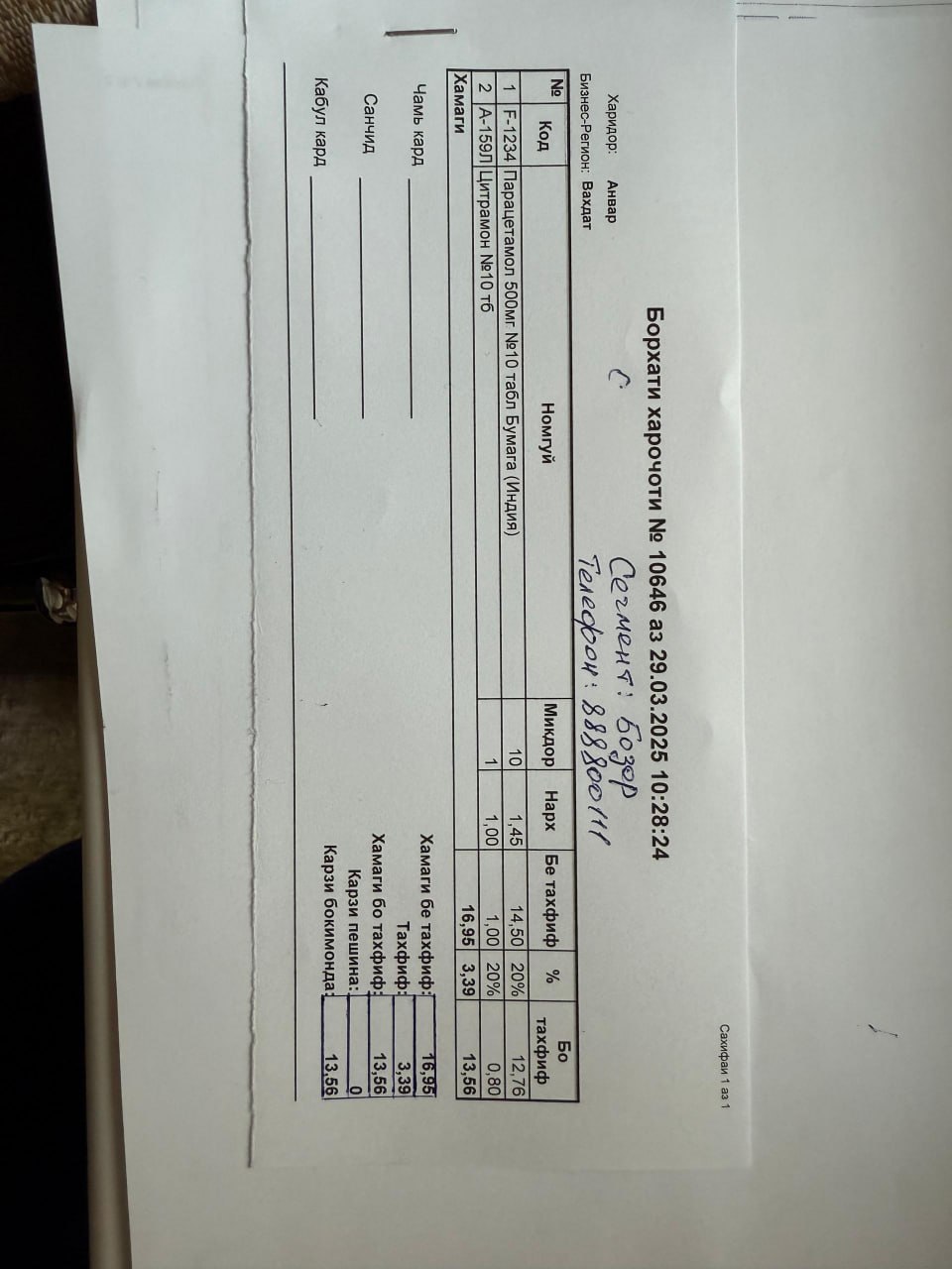 4) в шаблоне накладного реализации товаров добавить "Сегмент" и "Телефон контрагента" (пример прикреплю ниже)