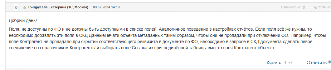 Но если отключена настройка "независимо вести партнеров и контрагентов", то вывести реквизиты контрагента (наименование, ИНН, КПП, адреса, тел, контактные лица в склонении и т.д) из договора невозможно.