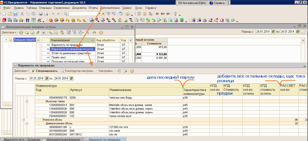 Надо добавить колонку: дата последней партии (партионный учет ФИФО) и добавить остальные склады в отчет.