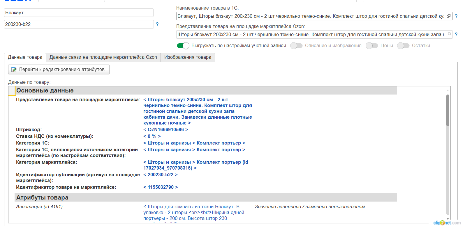 Требуется выгрузить номенклатуру со всеми картинками из озон в 1с унф 3.0 используя встроенную интеграцию ( канал продаж - озон) .