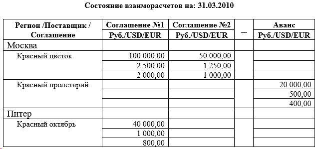 Необходимо составить отчёт о состоянии взаиморасчётов по регионам на определённую дату, где регион — это характеристика. (Рисунок2)