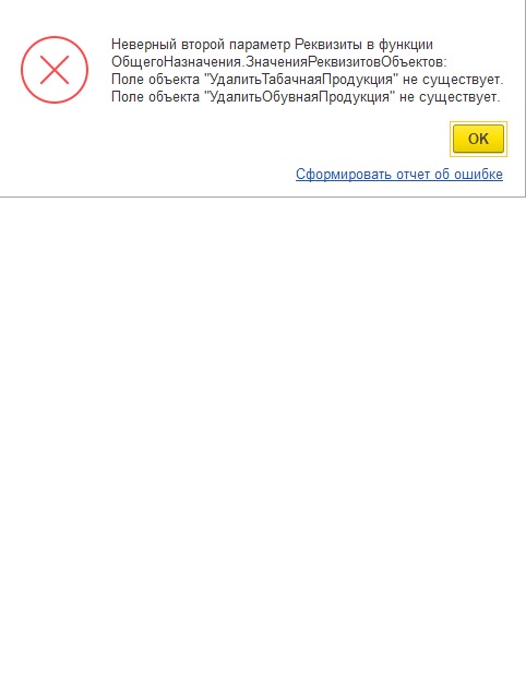 После обновления не создать номенклатуру. выскакивает ошибка.