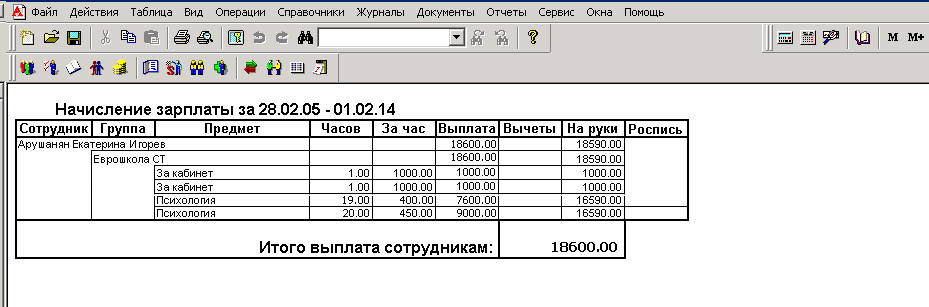 |Часов = Регистр.ВзаиморасчетыСотрудники.Часов;