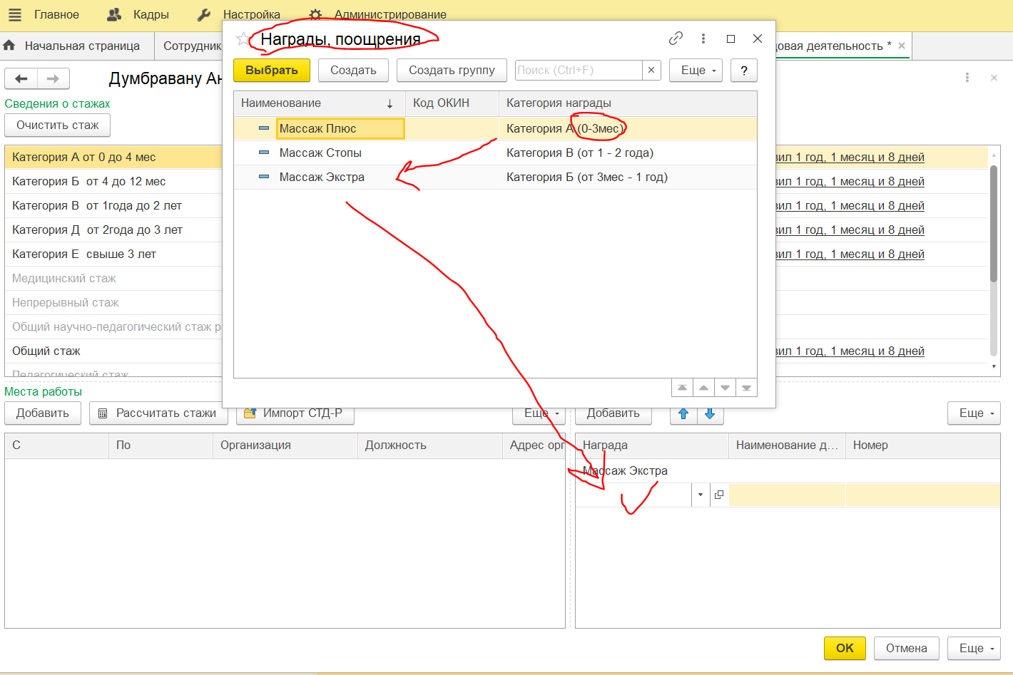 3. Добавить столбец. Перечень.(будет браться из категории награды) по кнопке заполнить награды