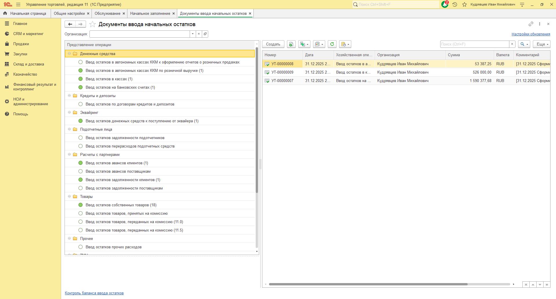 Требуется перенести начальные остатки товары денежные средства задолженности покупателей и поставщиков из УТ (последний реализ ) в чистую БП 3.0