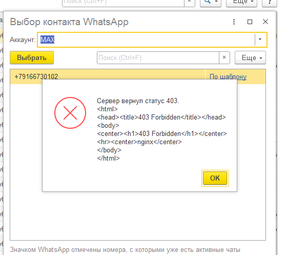 Ранее было настроено подключение ватсапа через грин апи к 1с. потом через это же подключение сделали макс но работает только в том случае если клиент написал первым. а вот если я пишу первый появляется ошибка (скрин 1). так же появляется ошибка если с Ски отправляешь документ (скрин 2)