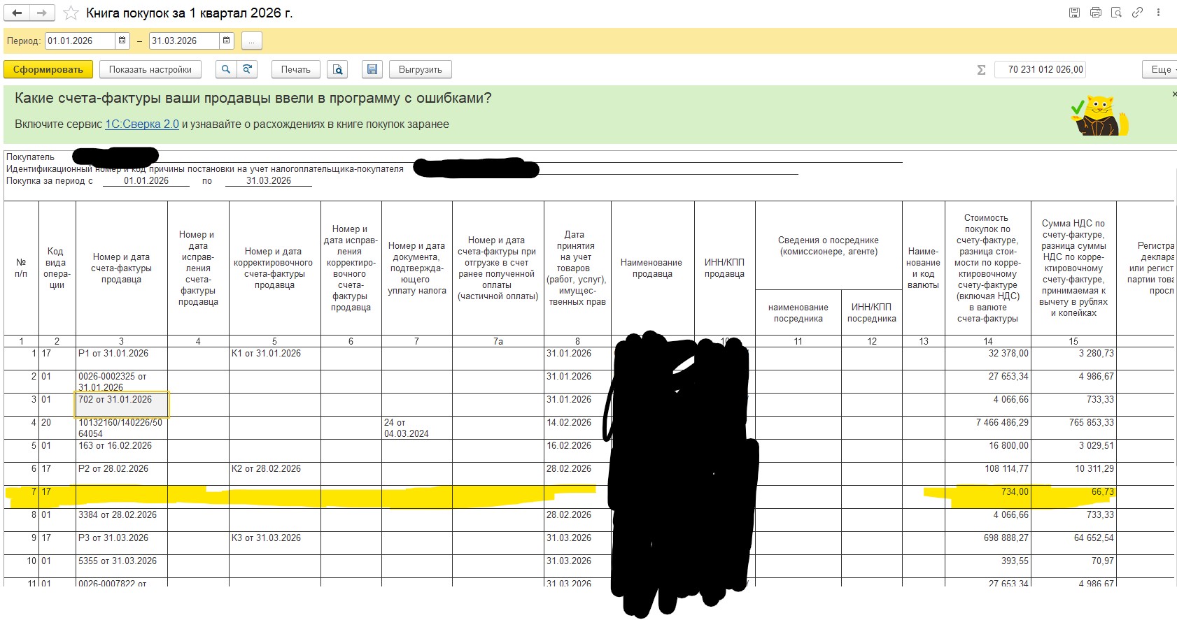 Комиссионная торговля. В книге покупок вылезла непонятная сумма. В начале года был переход с УСН. Может в этом дело. Понять не можем. Нужно куда-то эти 734 рубля деть.