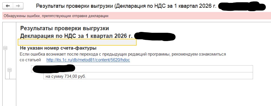 Декларация по НДС. Не указан номер счета-фактуры